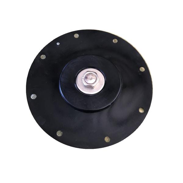 The electromagnetic pulse valve diaphragm is a whole piece of rubber diaphragm installed with a riveting head used to block the compressed air pipeline or the air outlet of the blocking valve, a venting unloading hole and a bolt hole for fixed support around it. It is the key control part in the electromagnetic pulse valve.